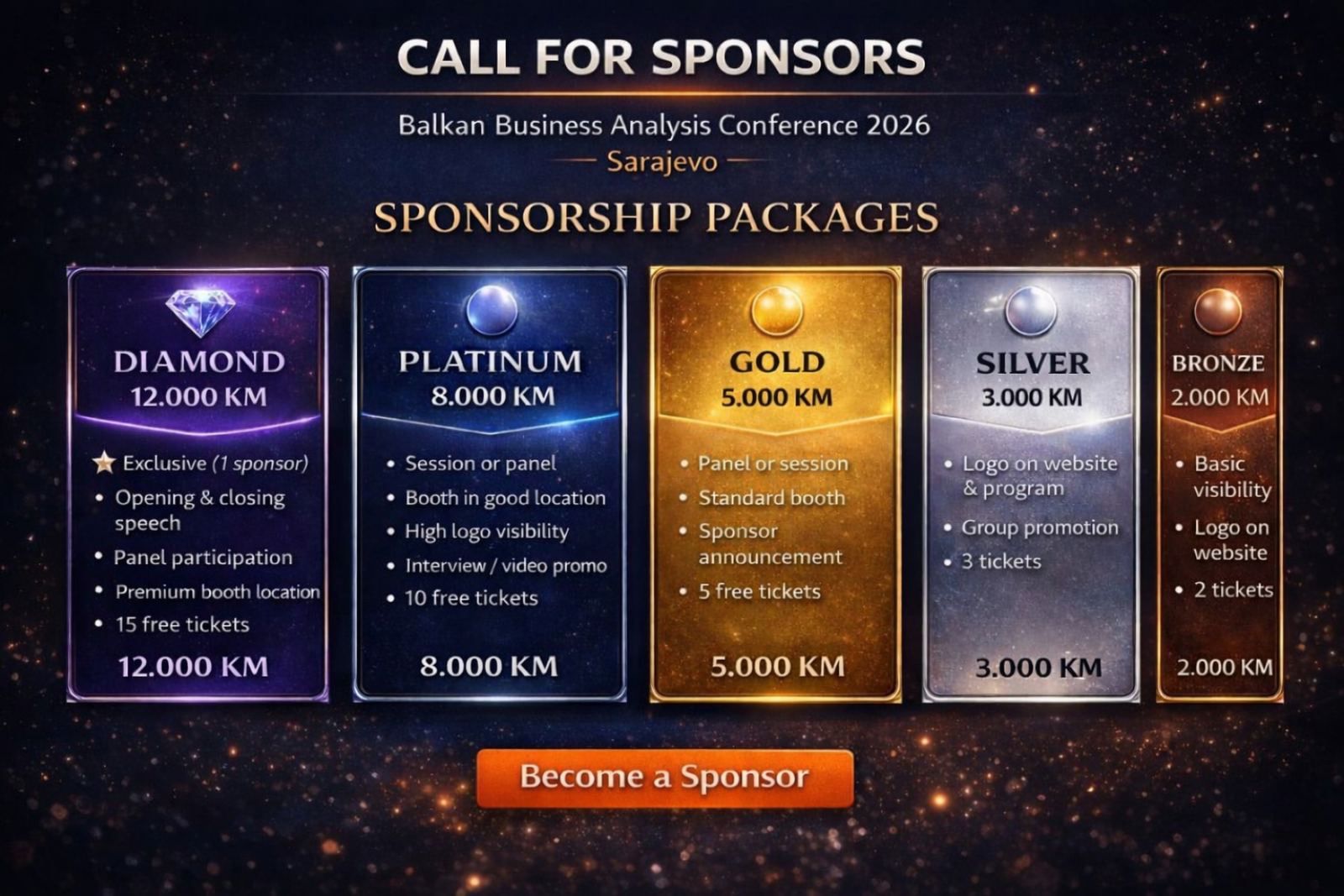 Become a sponsor of the Balkan Business Analysis Conference 2026, taking place in Sarajevo.
